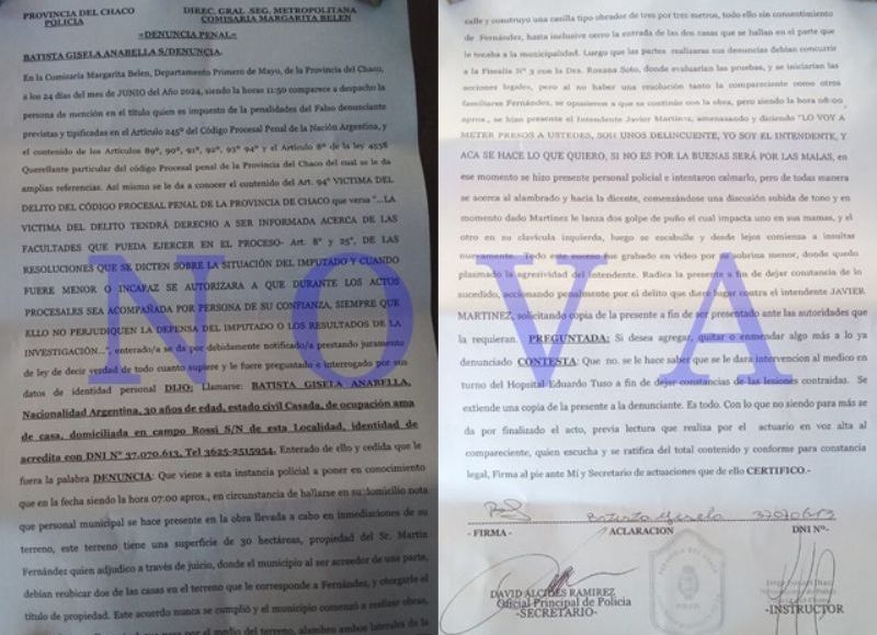 "Sos un intendente maleducado", se escucha y siguen "vos queres mandarle a todo el mundo, los papeles que tenés debías llevarle a la fiscal, no traer acá". Según fuentes policiales, Batista también denunció que el intendente Martínez se comportó de manera prepotente y la agredió físicamente con golpes de puño en el rostro.